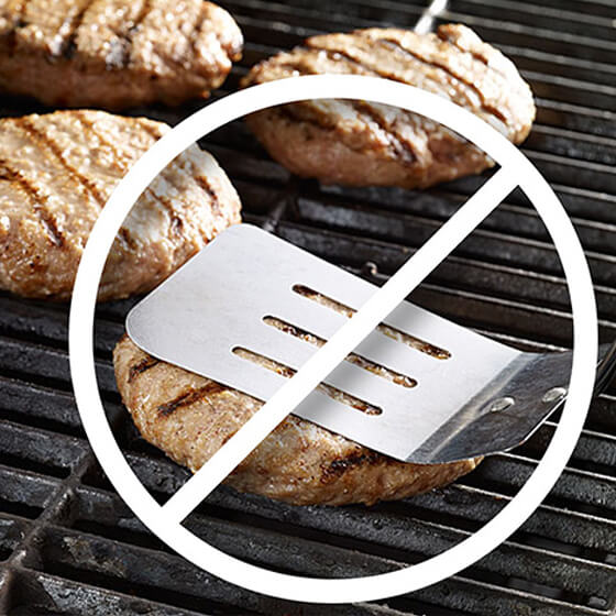 Pushing down on your burgers with your spatula will cause you to lose the juices!