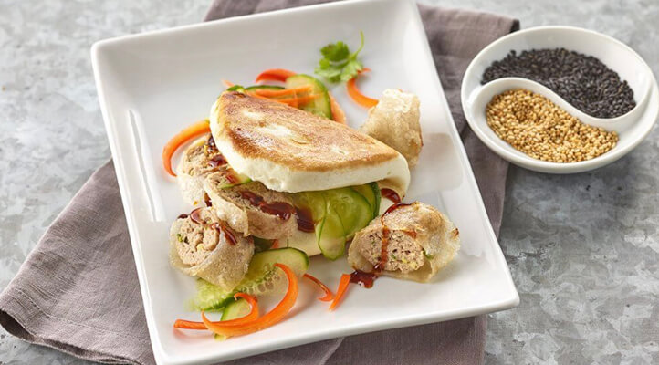 Chef Chris Cheung, award-winning restaurateur from New York City’s Chinatown and chef/owner of East Wind Snack Shop in Soho, created the Turkey Burger Spring Roll — featuring two homemade ground-turkey-filled spring rolls in a bao bun.