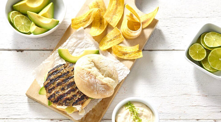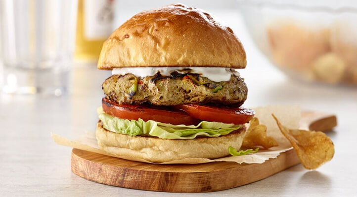 Award-winning Certified Master Chef Ron DeSantis, principal advisor of the consulting firm CulinaryNXT and a writer, delivers something unexpected with the Guacamole Turkey Burger topped with Sour Cream Aioli and featuring a guacamole-infused, handmade ground turkey patty.