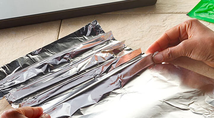Fold tin foil in an accordion-style pattern to create a ‘z’ shape.
