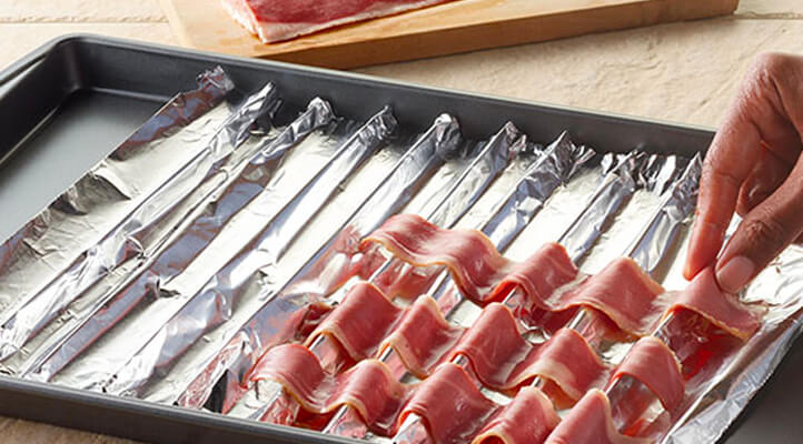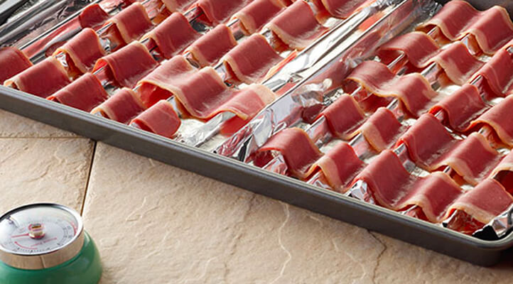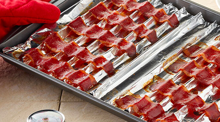 Cook turkey bacon as specified on the package. Always cook to well-done, 165°F as measured by a meat thermometer. Learn how to safely handle turkey.